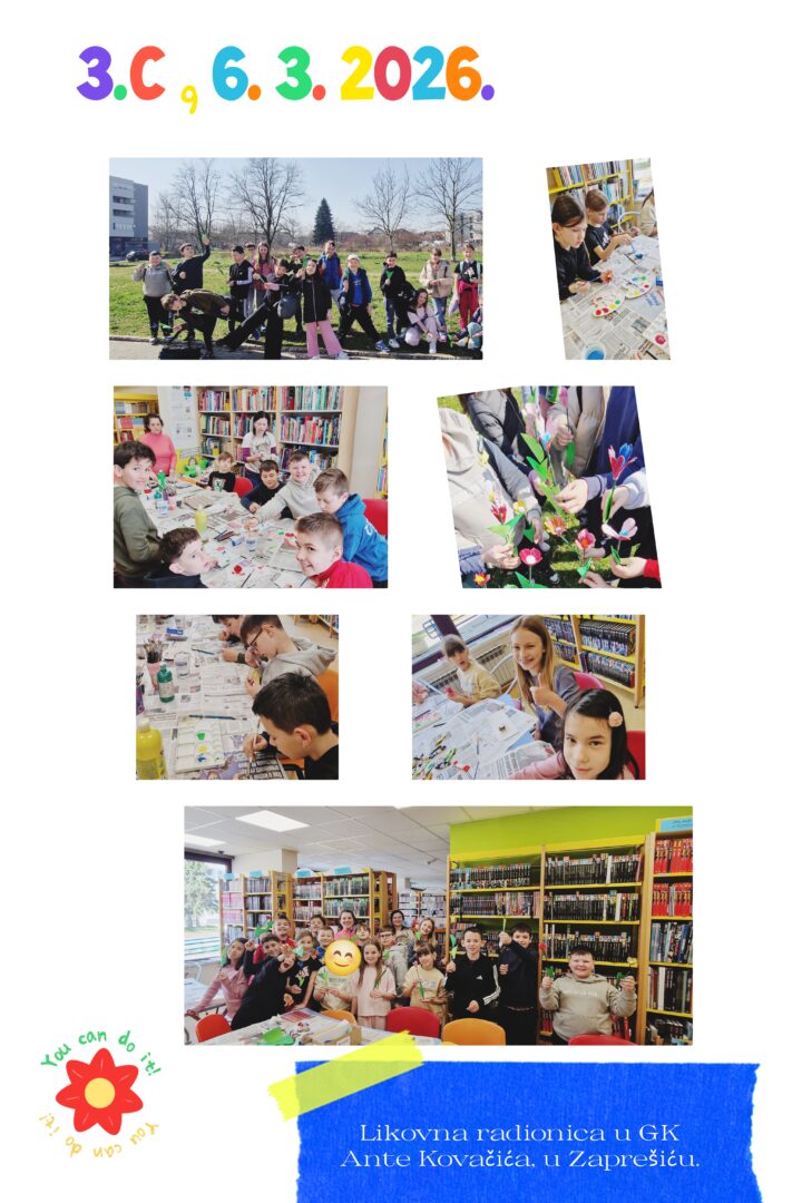 Likovna radionica GK Ante Kovačića by Marija Gagro Milošević | ožu 23, 2026 | Nekategorizirano Učenici 3.c razreda, 6.3. 2026. sudjelovali su na likovnoj radionici GK Ante Kovačića, u sklopu projekta Zelena knjižnica.