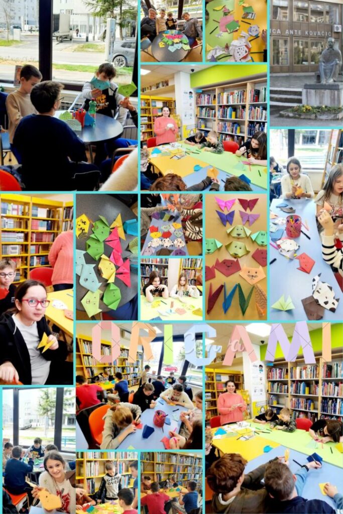 Za kraj radnog tjedna, 13. ožujka 2026., Gradska knjižnica Ante Kovačića u prijepodnevnim satima otvorila je svoja vrata za origami radionicu. Učenici 4.e razreda rado su se odazvali kako bi upoznali japansku umjetnost savijanja papira i unaprijedili likovne vještine. Suncem obasjan Zaprešić na putu do same knjižnice pozivao je učenike na šetnju, razgovor i smijeh. Dolaskom u knjižnicu marljive ruke četvrtaša, uz usmjeravanje voditeljice radionice, slikarice Hanadi Al-Samman, oblikovale su lijepe figure od papira. Učenici su bili zadivljeni idejama voditeljice, kao i otkrivanjem vlastitoga umijeća. Toliko da im je vrijeme proteklo u hipu. Obogaćeni novim iskustvom i ponosno noseći svoje uratke, vedrim koracima zaputili su se u školu uz komentare: Kad ćemo iznova na izvanučioničku nastavu?